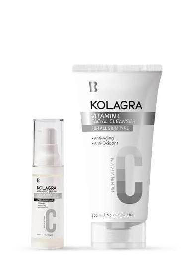 كولاجرا غسول وجه فيتامين سي + سيرم فيتامين سي عرض هو عرض فعال لتفتيح ونضارة من Kolagra. الغسول غني بفيتامين C وE وحمض الفيروليك لتنظيف لطيف، إزالة الشوائب، ودعم الإشراق مع تفتيح تدريجي للبقع. السيروم بتقنية ليبوسومال يحمي الفيتامين C من الأكسدة، يقلل علامات الشيخوخة، ويعيد الحيوية.