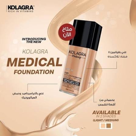 كولاجرا فونديشن 30مل حماية 30 ميديم هو فونديشن بـSPF30 من Kolagra للبشرة المتوسطة، يوفر تغطية متوسطة تخفي العيوب وتوحد اللون مع حماية UVA/UVB.
